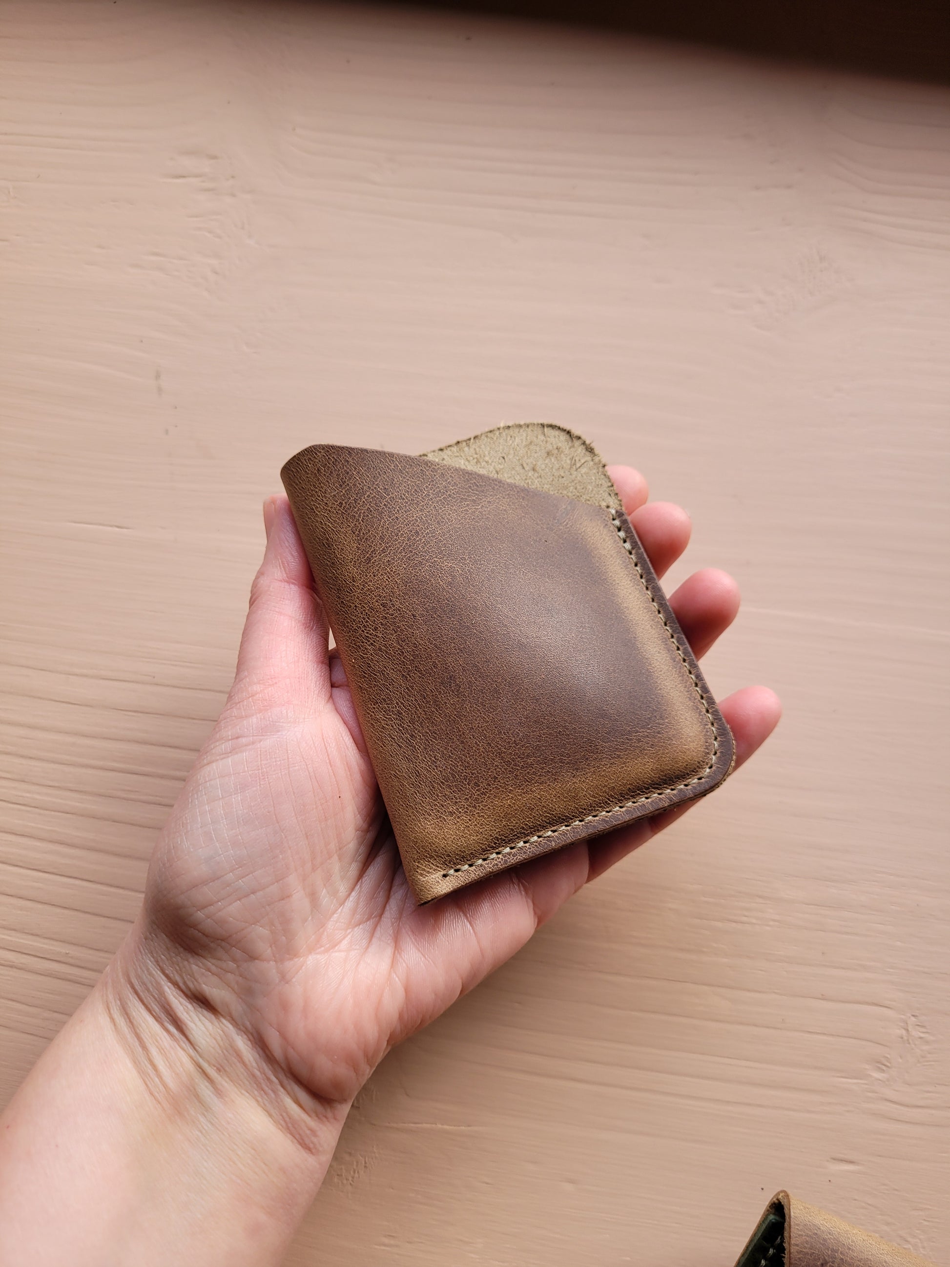 A minimalist, simple card pouch to pop in a pocket or bag. Ive had mine for several years now and it gets better every year. Excellent for when you only have a coat pocket (or knitting bag) but need your cards to hand. Made to love and last.