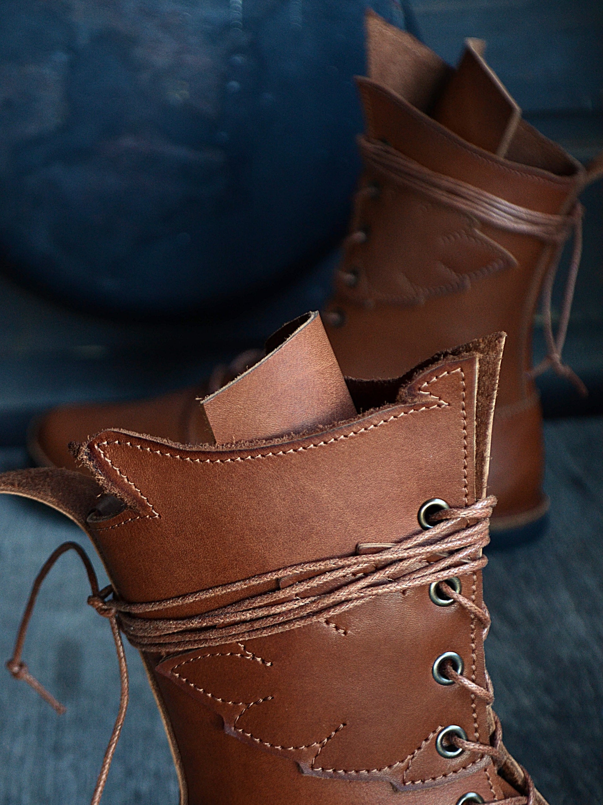 UK 6 - Frond Nettle - Handmade Leather Boots | Mid Height, Woodland Style - No.4402