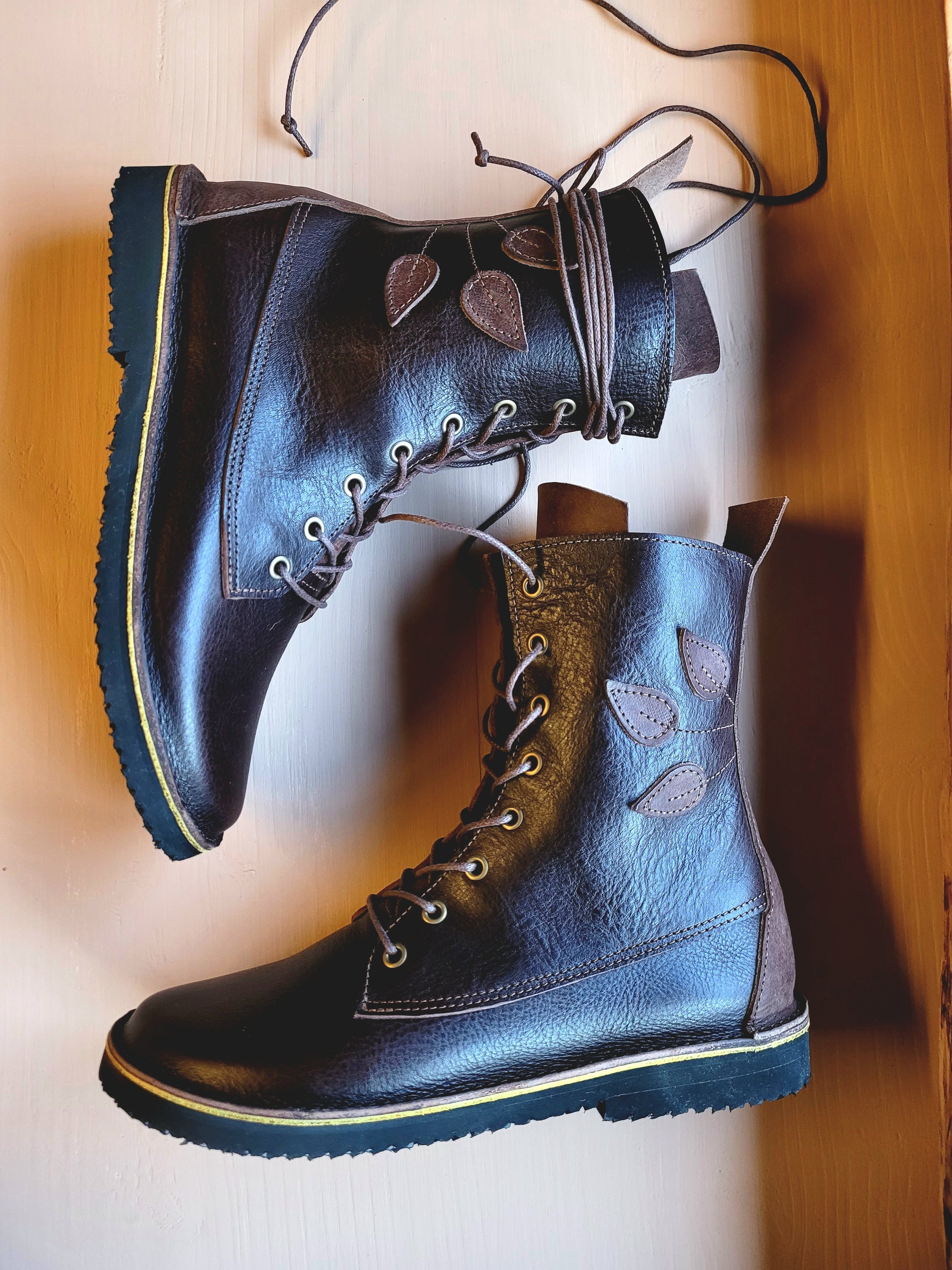 Handcrafted in my West Country studio from premium Italian leather. Limited studio edition, designed for comfort and everyday wear. Each pair is cut, stitched, and finished by hand — ready to post.